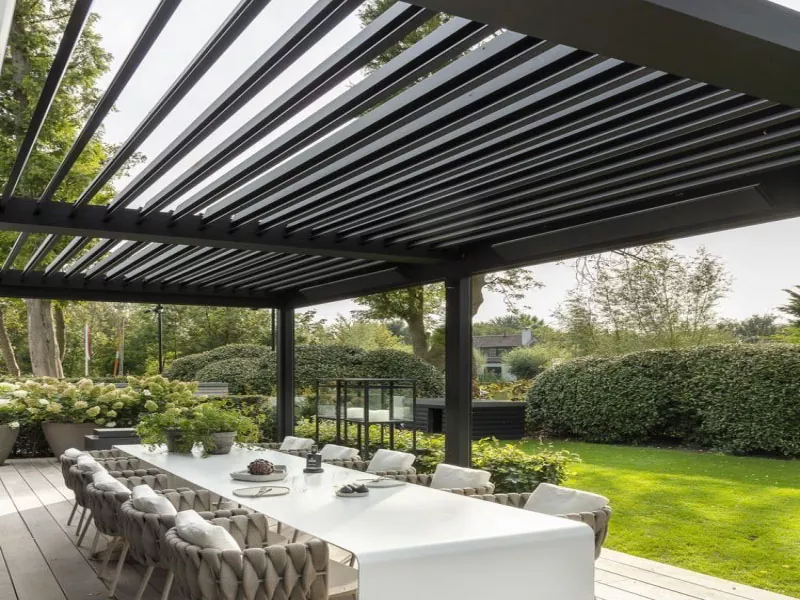 Vår aluminiumpergola är utrustad med en rad funktioner, vilket gör den till ett idealiskt val för ditt utomhusområde. Oavsett om du vill sola dig i den uppfriskande vintersolen, hålla dig sval och sval under den varma sommaren, eller hålla dig torr och bekväm under regniga dagar, kan Viontas terrasspergola tillgodose dina behov.