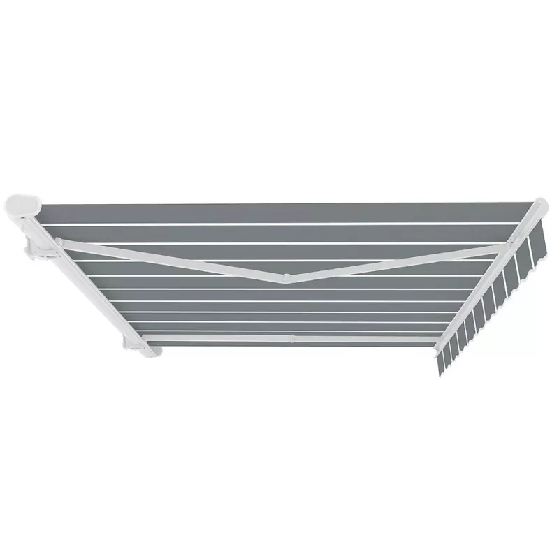 Färdiga till en mycket hög specifikation, de har en stark lätt metallram med pulverlackerade aluminiumarmar. De kan öppnas och stängas enkelt och smidigt med lindningshandtaget på vänster sida. Markisen kan öppnas så mycket eller lite som du vill upp till maximal utskjutning.